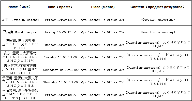 2016-2017学年第一学期外教值班表