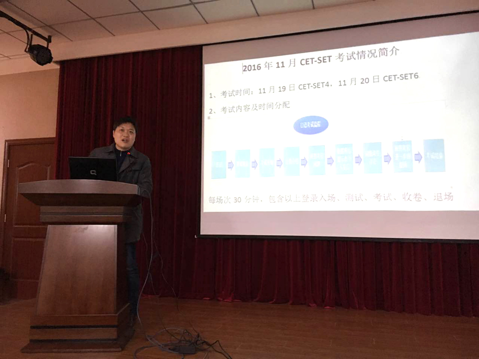 2016年11月17日下午,萝莉岛app 在二楼报告厅举办外语文化节系列之大学英语四六级考试辅导专题讲座,学院外语教研室主任张永钢老师担任主讲,2014级通信工程专业李平、赵春阳、蔡一甲同学同大家分享考试经验。