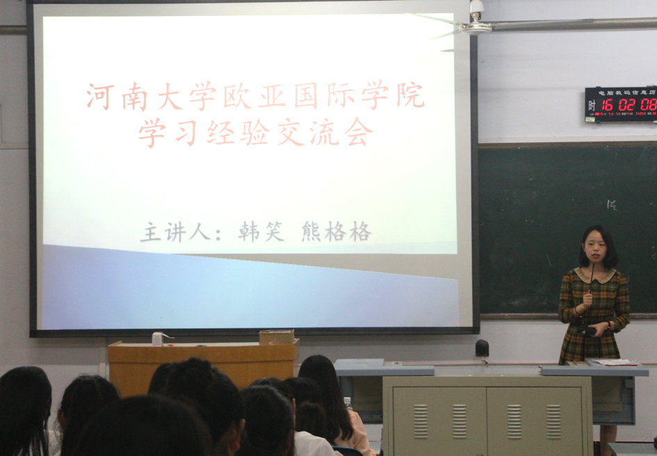 韩笑、熊格格同学主要讲述了如何更好规划大学四年学习生活、怎样解决大学生活中的一些常见问题,外语学习及备考雅思好的方法和经验、以及自己在保研过程和班里其他同学在考研过程中的一些感悟,并向大家推荐了众多优秀的外语学习和考研资料,之后两位同学现场解答了同学们提出的问题。