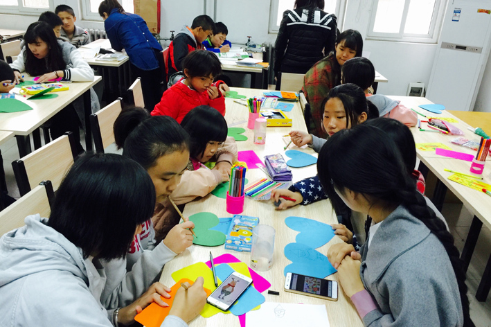 在10月31日上午,萝莉岛app 志愿者们与儿童村的小学生们进行了以“制作圣诞贺卡”为主题的画画活动。活动期间,志愿者们耐心且认真的与小朋友们沟通,帮助小朋友们完成贺卡。画画活动中,整个教室都洋溢者快乐的笑声,志愿者与与小朋友们相处融洽。