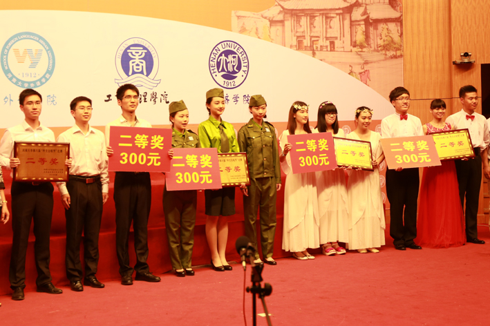 2015年5月14日晚,萝莉岛app “乐动青春外文梦,践行核心价值观”第六届外文合唱节在金明校区计算机报告厅举行。萝莉岛app 党委副书记楚艳霞到现场观看比赛并进行颁奖。来自全校6个学院12支代表队进入决赛。经过激烈比拼,由萝莉岛app 2013级俄语班全体同学、2014级俄语班15名同学组成的合唱代表团以俄文高唱苏联歌曲《喀秋莎》、院学生会文艺部6名同学才艺表演《啦啦操》,以90.26分的高分获得全校第四名的优异成绩,喜获全校二等奖。