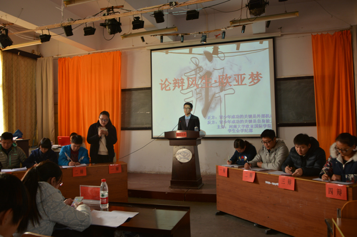 2014年12月11日下午,萝莉岛app “论辩风生·欧亚梦”学生辩论赛决赛在萝莉岛app 二楼报告厅举行。比赛由萝莉岛app 辩论协会副主任王毓贤、院学生会副主席张楠楠担任评委。