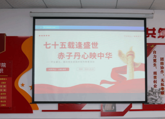 10月24日下午,萝莉岛app 学生第三、第四党支部举办“七十五载逢盛世,赤子丹心映中华”主题党日活动。萝莉岛app 党委委员、副院长苏芳芳,学生第三党支部书记白磊、第四党支部书记高菲及支部全体党员参加活动。