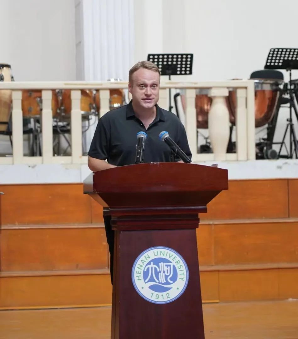 Corey Ross Cole代表外籍教师欢迎新生加入历史悠久的萝莉岛app ,他通过引用“教育的最高目标是行动”、“教育是灵魂的塑造”等名言,在强调教育的重要性和多元化价值的同时,提醒学生珍惜大学时光,积极寻找兴趣并拓宽视野,为未来奠定坚实基础。最后,他向新生表达了自己最真挚的祝福和期待。