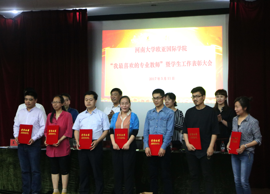 在学院党委副书记楚艳霞宣读相关的表彰决定后,进行了隆重颁奖仪式。在欢快的旋律中,学院首先对在首届“我最喜欢的专业老师”评选活动中的获奖教师:肖帅、王健聪、闫吉青、王乐松、王群章、王金磊、梁勇、孔庆梅进行了颁奖。随后,学院对学生年度评先奖优、“五四”表彰、新生军训、春季运动会、“河大杯”足球比赛、暑期实践、学生创新创业、挑战杯大赛、雅思考试和省级、市级、校级其他各类活动中的荣誉获得者分别进行颁奖。