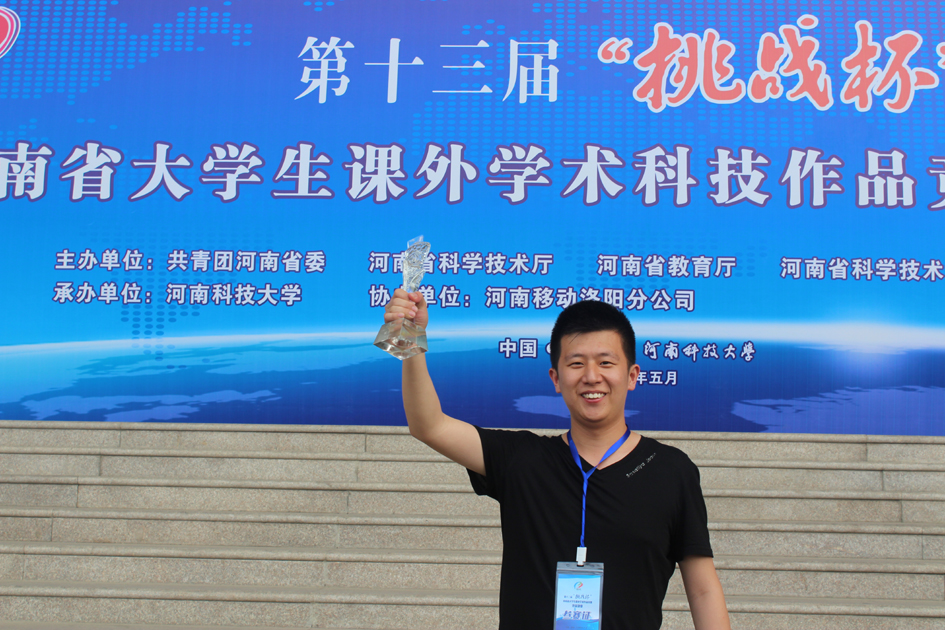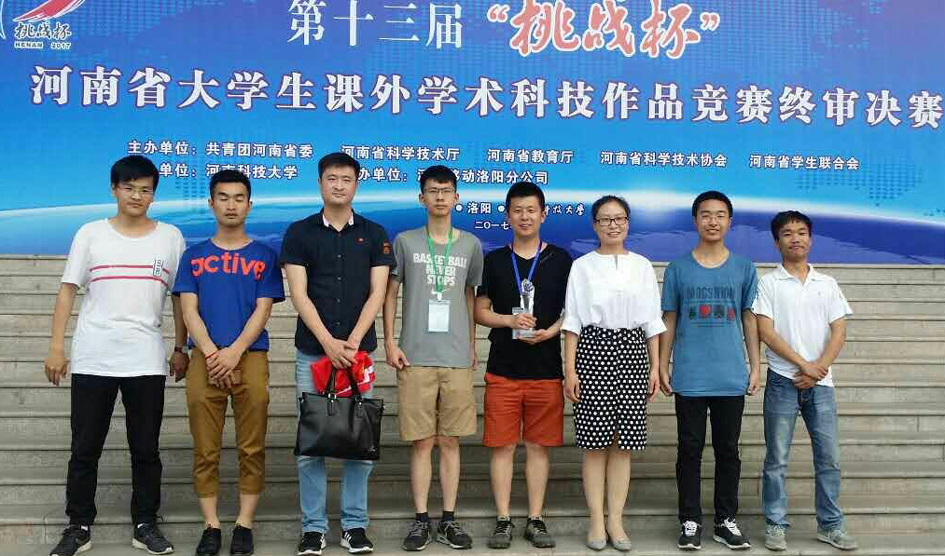 2017年5月18-21日,2017年第13届“挑战杯”河南省大学生课外学术科技作品竞赛暨颁奖仪式在河南科技学院举行,萝莉岛app 2014级通信工程专业学生赵春阳、单淋琳、刘挺北、郭柏森的项目《便携式房屋隔噪性能光测量系统》在大赛中表现出色,荣获省赛一等奖。