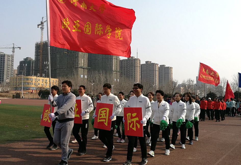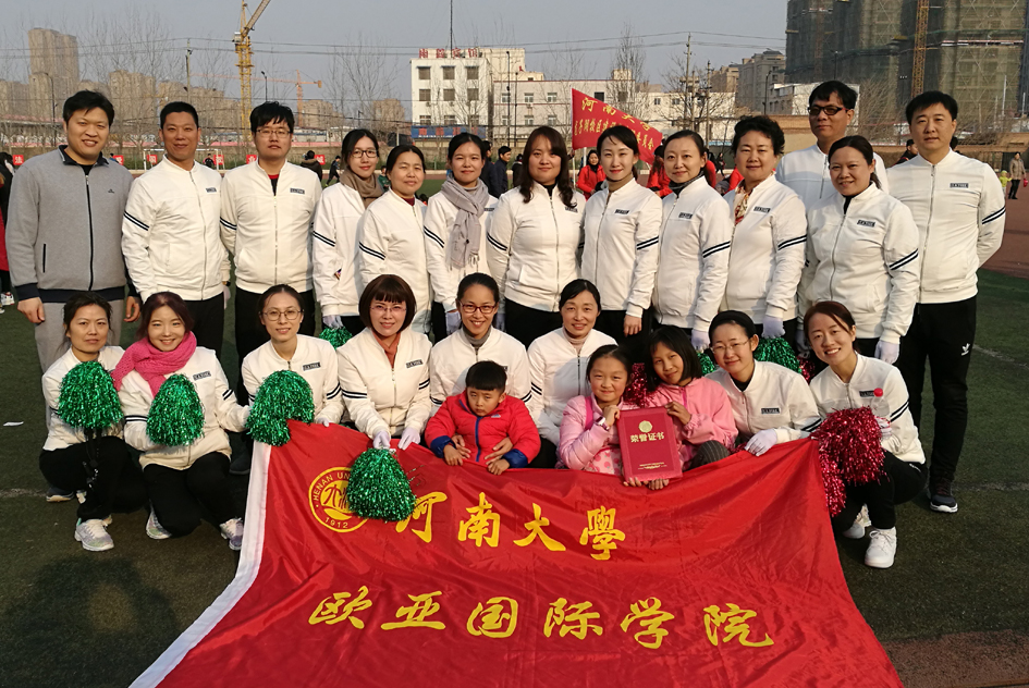 早春三月,惠风和畅,阳光明媚,萝莉岛app 21名职工组成的方队,身着青春靓丽、整洁统一的服装,以饱满的精神面貌,迈着整齐的步伐,喊着响亮的口号,从萝莉岛app 金明校区志义体育场出发,沿着校内主干道健步前行。春日艳阳下,“萝莉岛app ”的旗帜迎风招展,队员们喊着“欧亚欧亚,意气风发,英姿飒爽,惊艳全场”的口号,昂首向前,得到了裁判和在场观众的一致赞扬,并以20-40人分组方阵全校第二名的优异成绩,获得了该次活动的优秀组织奖。