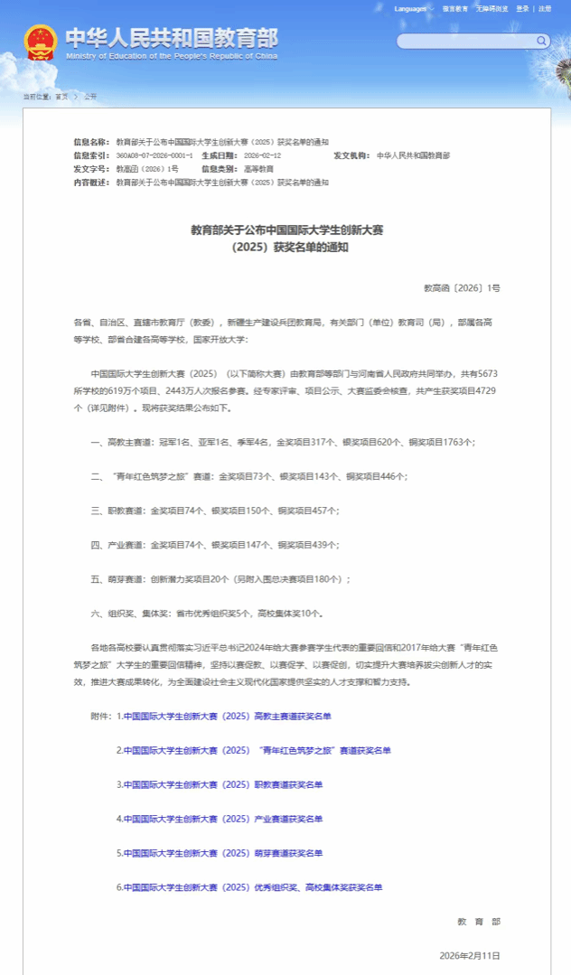 中国国际大学生创新大赛由教育部主办,本届大赛吸引了来自全球130余个国家和地区、1.5万余所高校的200余万个团队、950余万名学生参赛,是国内大学生创新创业领域规格最高、规模最大、影响最广的顶级赛事之一,被誉为“大学生创新创业的奥林匹克”,是检验高校创新创业教育成果、展现青年学子科创实力的核心平台。武蔓同学带领团队,聚焦钠电储能领域的关键技术难题,创造性地提出了基于废碱循环再生的补纳剂解决方案。项目不仅积极响应了国家“双碳”战略与绿色循环发展的号召,更在新能源材料应用领域展现了卓越的科研转化能力,实现了环境效益与经济效益的双重提升。