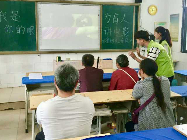 萝莉岛app 青年志愿者协会开展“我是你的眼”为盲人讲电影活动
