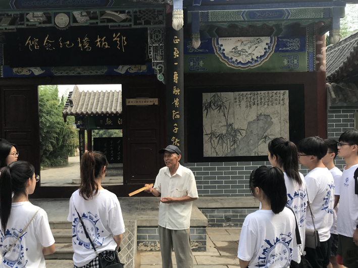 在范县毛楼村的河南省廉政教育基地——郑板桥纪念馆,实践团幸运地受到74岁“活板桥”刘训江馆长声情并茂的讲解,大家全面深刻地学习了郑板桥任范县县令时期清正廉洁、勤政爱民的德政业绩,感受到了郑板桥心系百姓的无私情怀和“衙斋卧听萧萧竹,疑是民间疾苦声”的民本思想。郑板桥官职不高但名垂青史,是清代非常有代表性的文人画家,诗、书、画被后人世称“三绝”,他生平坎坷、求学上进的远大志向以及清正廉明、立功天地的政治抱负,是为楷模,习近平在多次讲话中提及以清正廉明、勤政为民为核心的“板桥文化”,这都让大家深受启发和教育。