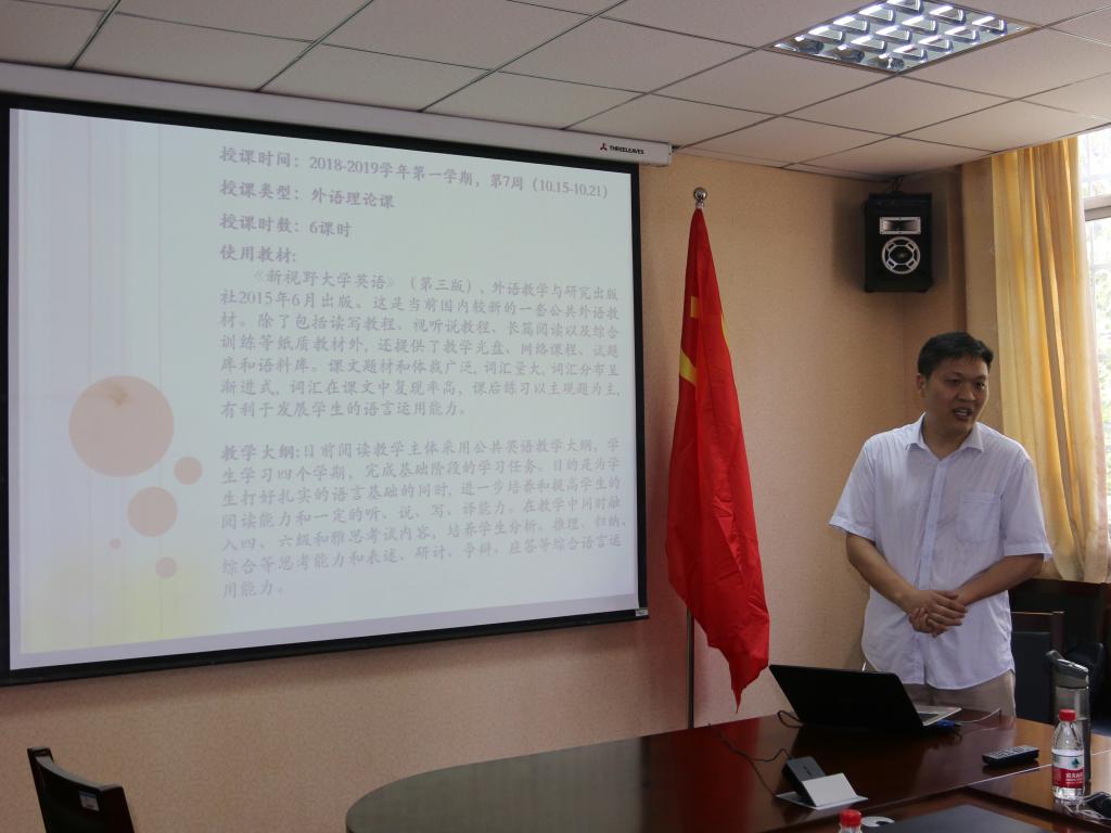 随后,英语教研室教师和俄语教研室教师分别在院三楼会议室和二楼教研室进行现场教学展示。王运河教授担任英语教学评委,张红教授担任俄语教学评委,对青年教师们授课技巧、表达方法、课程教案、教学进度表以及教学课件中出现的问题逐一进行分析指正。