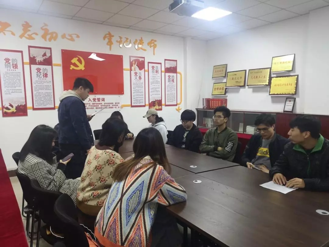 2019年4月22日,萝莉岛app 学生第三党支部在学院一楼党建活动室召开“回顾历史,坚定信念,思考现状,促进发展”的主题党日活动,学生第三党支部全体党员参加了活动。
