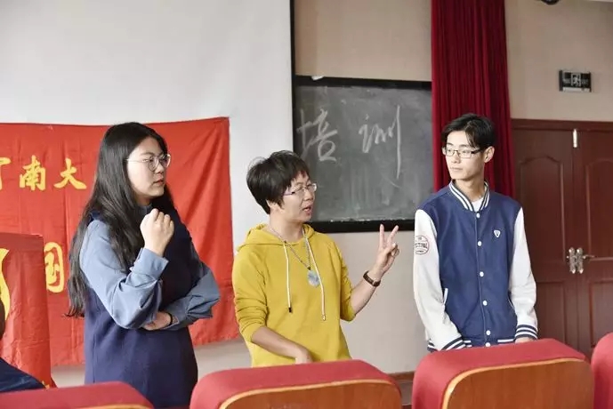11月4日上午八点,由萝莉岛app 青年志愿者协会组织的“带盲人游河大,给盲人讲河大”助盲培训活动在欧亚报告厅召开。