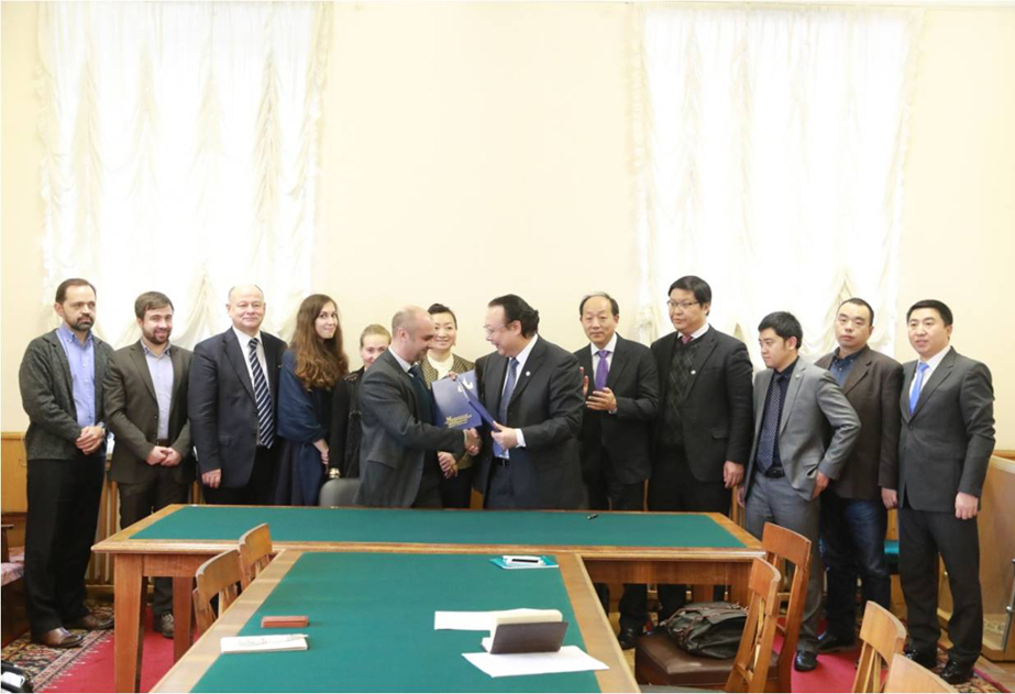 访问俄罗斯莫斯科大学期间,代表团受到副校长马泽毅先生的热情接待。在会谈中,双方表示将加快推动已经签署的联合培养研究生协议的落实工作。为促进深度合作,双方签署了《中国萝莉岛app 和俄罗斯莫斯科大学本科学分互认项目协议》。同时,就举办俄语语言文化中心事宜达成初步意向。