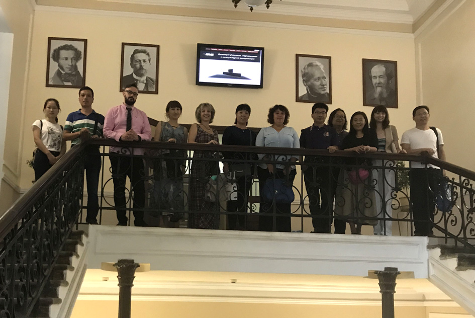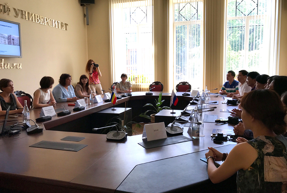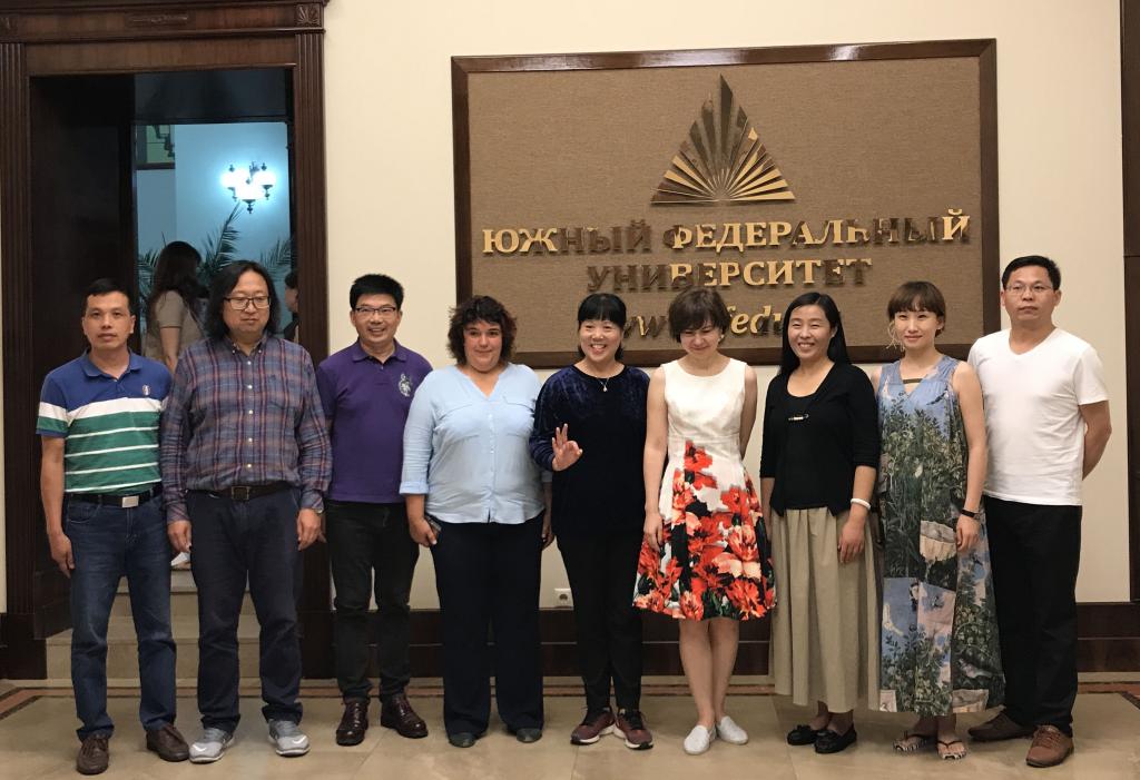 2017年7月17日-18日,萝莉岛app 党委副书记楚艳霞,教师代表刘香宇、刘佳明;艺术萝莉岛app 设计分院院长蔡玉硕、教师代表洪涛;新闻与传播萝莉岛app 教师代表强海峰,外语萝莉岛app 教师代表王志坚等一行7人到俄罗斯南联邦大学进行访问和交流。