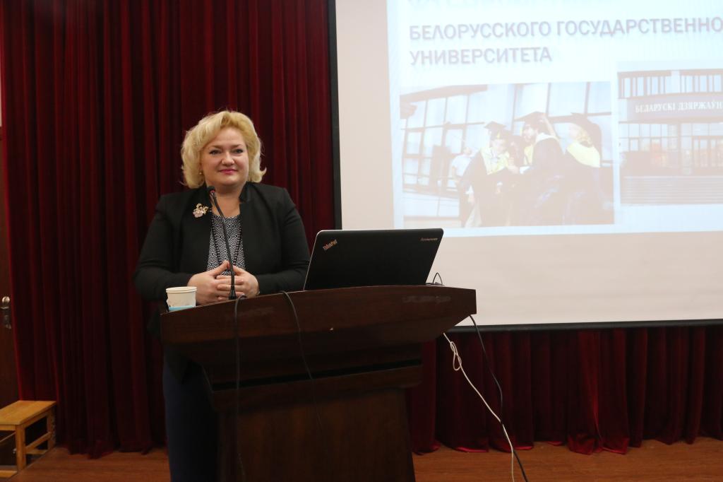奥尔加.萨姆谢维奇院长向同学们介绍了白俄罗斯的人文风情、历史文化、城市环境以及国立大学新闻萝莉岛app 的师资力量、人才培养、知名校友与毕业生就业情况,并认真回答了学生们提出的问题。