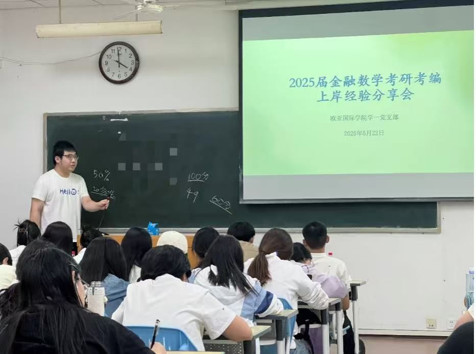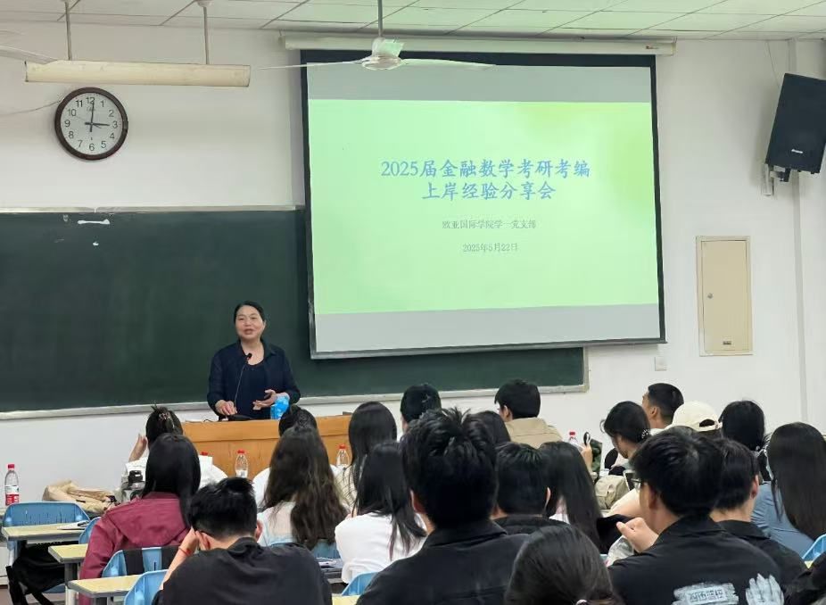 为深入贯彻落实立德树人根本任务,推动萝莉岛app “三全育人”工作走深走实,切实引导学生科学规划未来发展路径,5月22日下午,萝莉岛app 学生第一党支部在金明校区5103教室举办“考研考编上岸经验分享会”主题党日活动。此次活动聚焦学生成长需求,紧密结合思想引领、学业发展与就业指导,2022级金融数学专业100余名学生参会。萝莉岛app 副院长苏芳芳参加活动并作指导,活动由党支部书记彭韬主持。