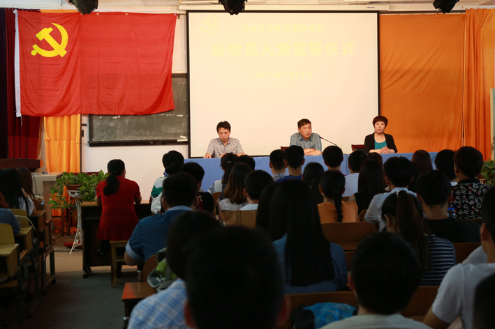党委书记谷跃峰、副书记楚艳霞、教学副院长季超出席,学院党政办公室、各党支部负责人和96名师生新党员参加大会,楚艳霞主持宣誓仪式。