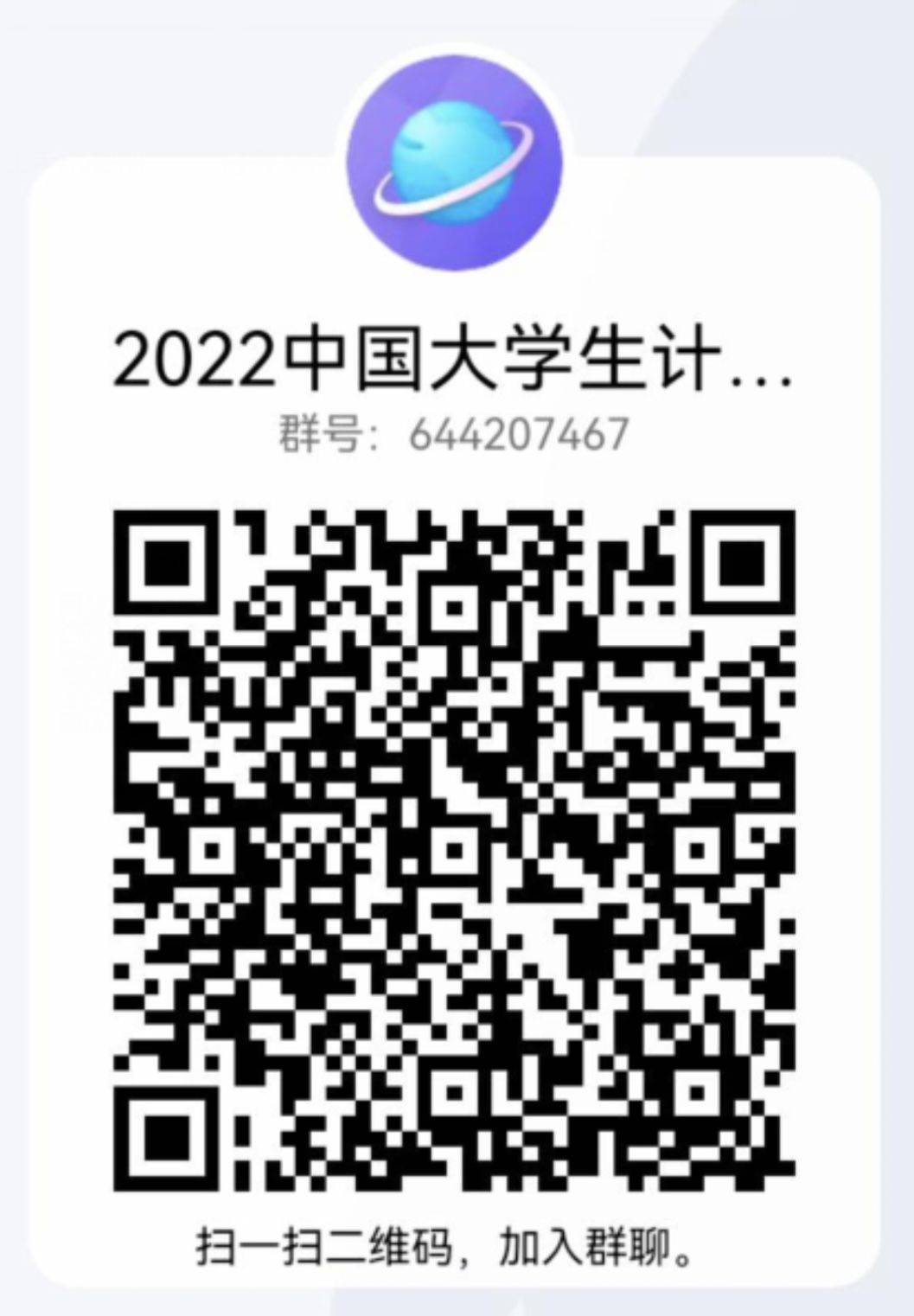 更为及时的通知请各位同学、指导老师加入大赛 QQ 群,群名:2022中国大学生计算机设计大赛,群号: 644207467(此群针对指导老师及学生)。