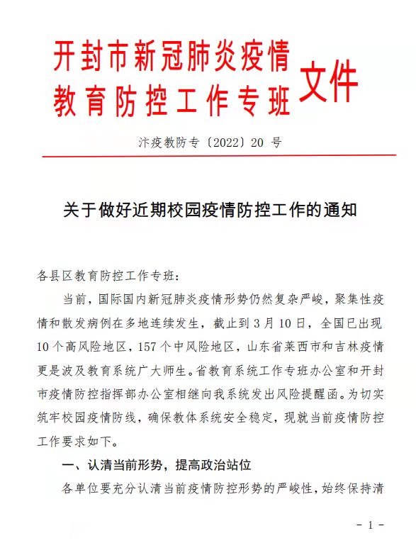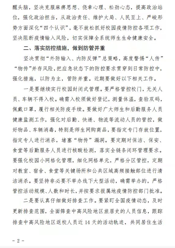 关于做好近期校园疫情防控工作的通知