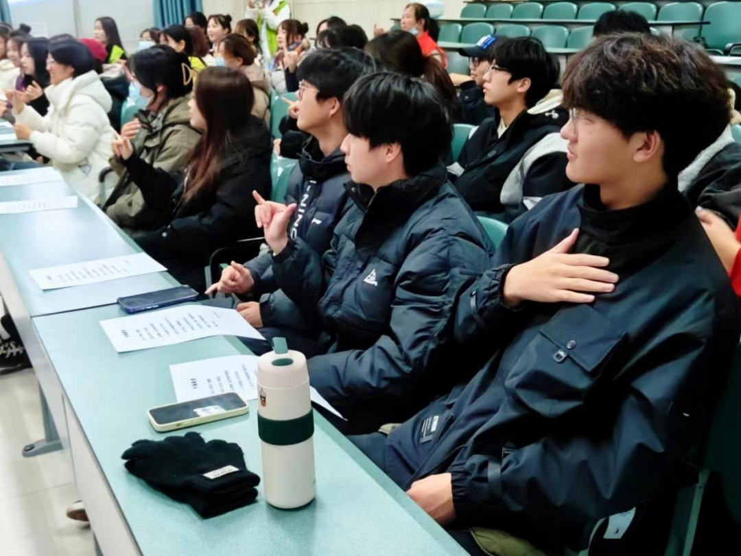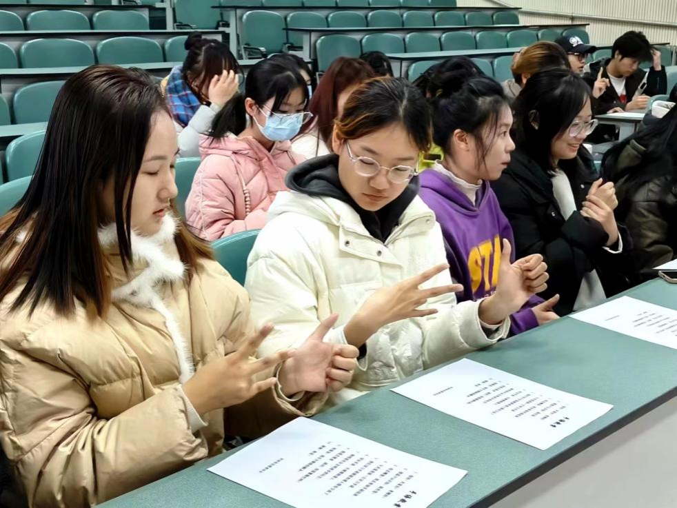 三楼阶梯教室举办了“博爱无声,手语传情”手语培训活动,活动由青协文艺部委员、2023级播音与主持艺术专业姚子熠主持。