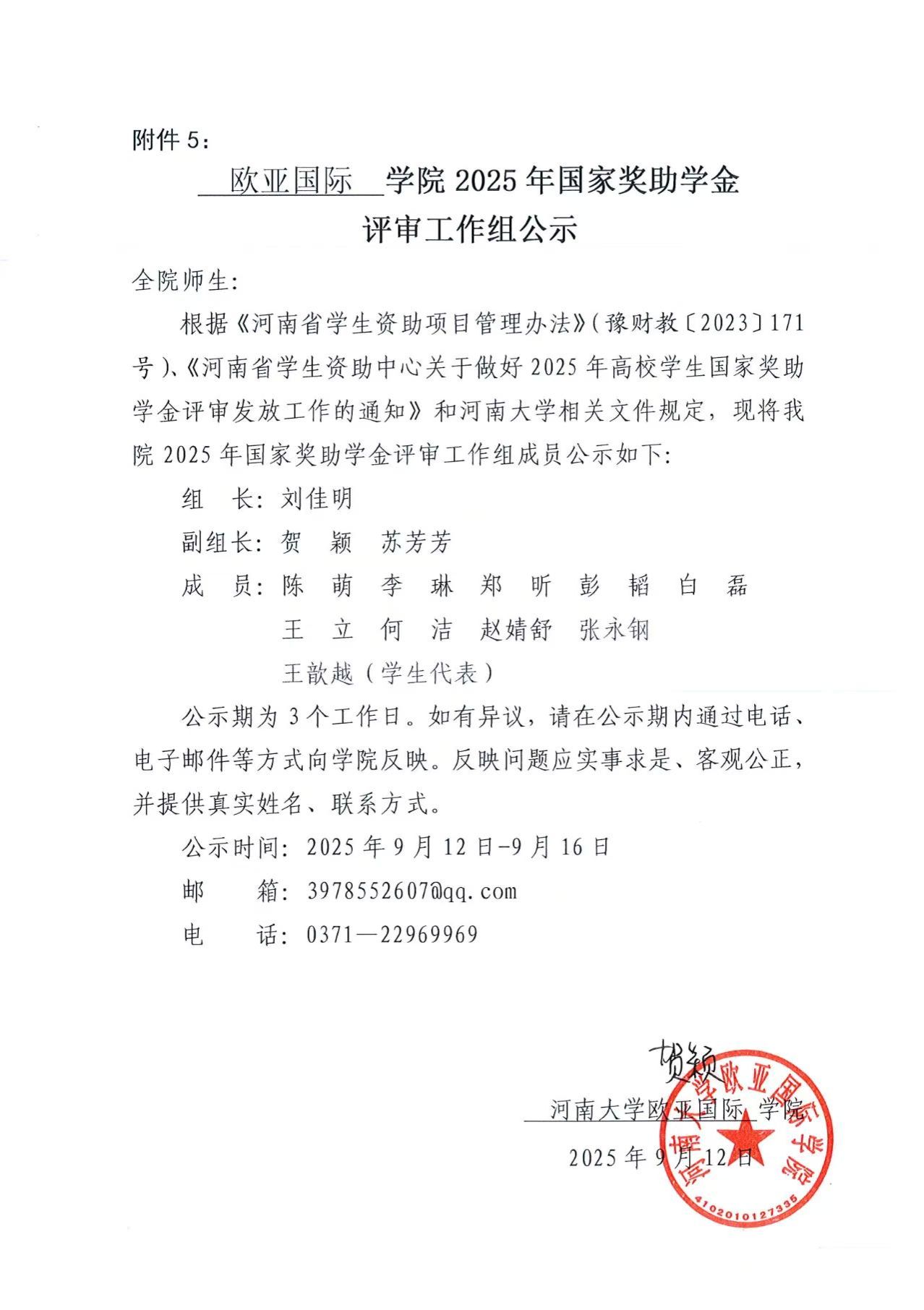 萝莉岛app 2025年国家奖助学金评议小组成员公示