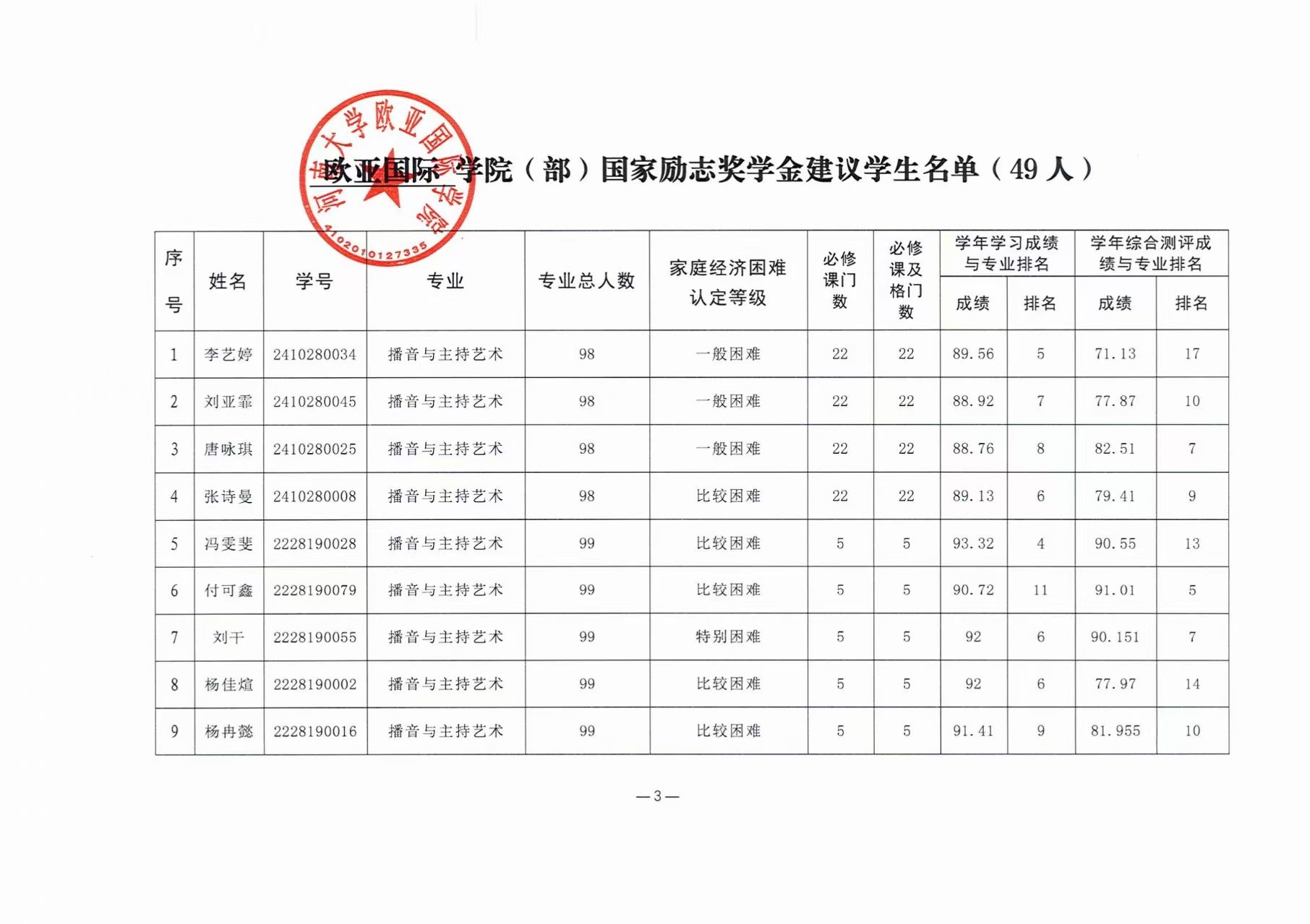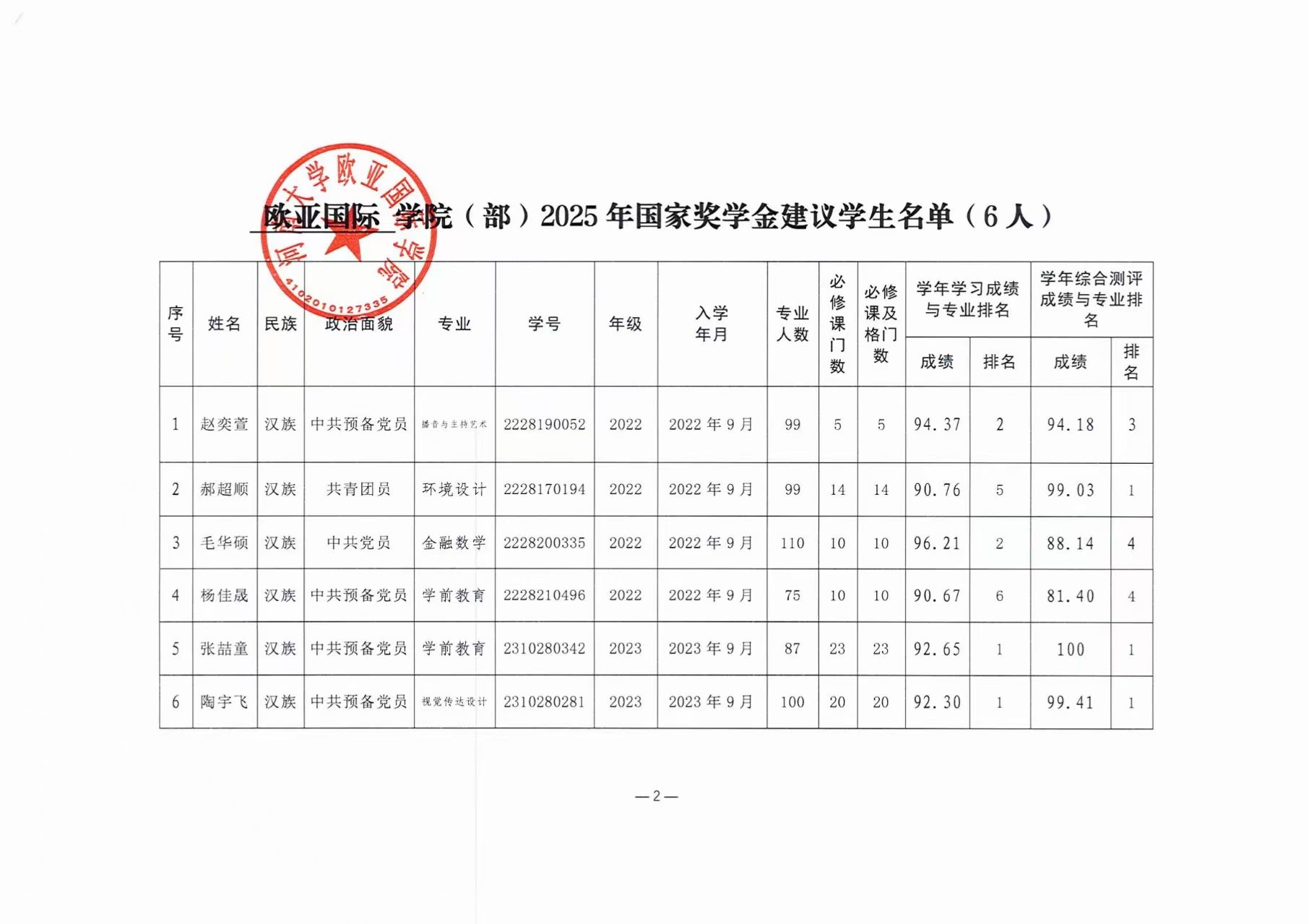 萝莉岛app 2025年国家奖助学金建议学生名单公示
