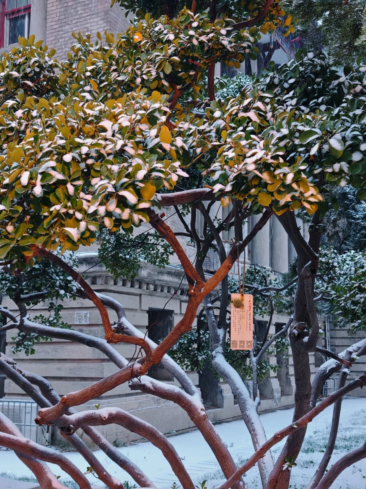 雪花像藏不住的温柔,慢悠悠铺满河大的每一个角落,随手定格都是自带滤镜的美好,每一帧都让人忍不住放慢脚步沉醉其中——博雅楼褪去平日的庄重,屋檐覆上一层薄薄的银霜,晨光穿透云层洒在雪上,细碎的光芒漫过青砖,连风都变得轻柔,静静矗立在雪中,成了冬日里最治愈的风景;林荫道上积起了松软的白雪,踩上去“咯吱咯吱”的声响,是冬日最动听的旋律,脚印深浅交错,藏着河大人奔赴热爱的痕迹;操场被厚厚的雪铺成一片纯白,成了天然的“快乐天地”,偶尔有学子笑着奔跑、打闹,雪花落在发梢、肩头,眉眼间满是藏不住的欢喜;就连食堂门口的绿植、路边的长椅,都被雪裹上了一层软糯的“外衣”,悄悄诉说着冬日的温柔,每一处景致,都让人心生欢喜。