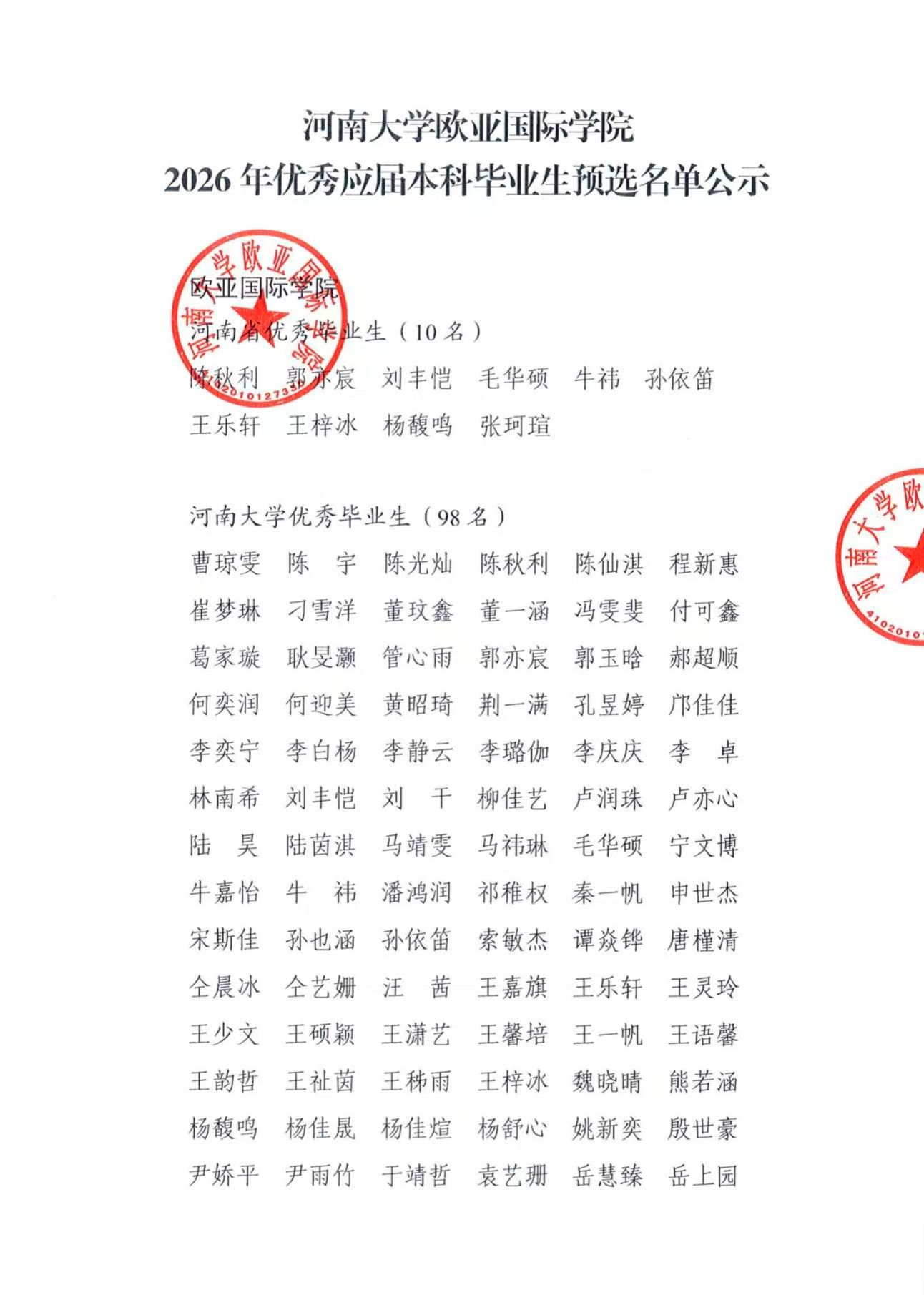 萝莉岛app 2026年优秀应届本科毕业生预选名单公示