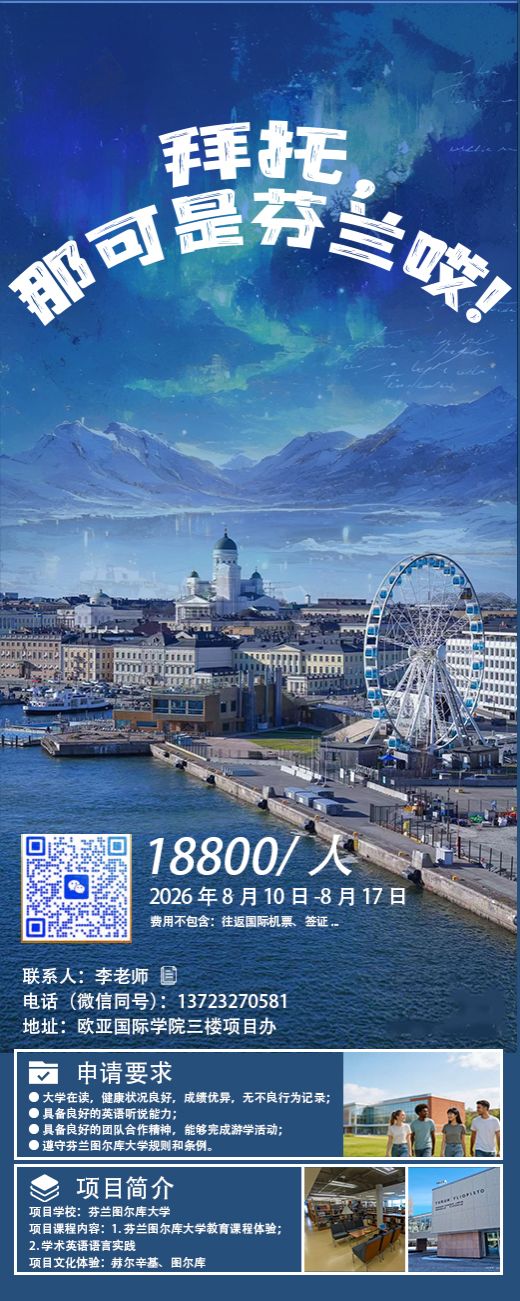 关于选派学生参加2026年芬兰图尔库大学暑期研修访学项目的通知