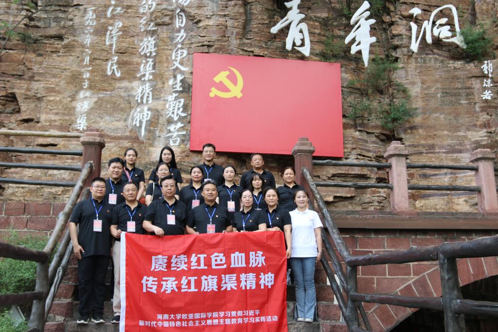 7月20日,萝莉岛app 全体教职工赴河南林州红旗渠开展主题教育学习实践活动。在红旗渠纪念馆,同志们认真学习了林州与红旗渠的建设发展历史并实地参观了红旗渠分水闸。随后,同志们重走修渠路,登上水长城,实地参观了红旗渠咽喉工程青年洞,身临其境地学习“自力更生、艰苦创业、团结协作、无私奉献”的红旗渠精神。在青年洞前,同志们面向党旗进行宣誓,重温入党誓词,铭记初心使命。