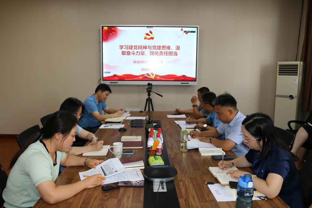 随后,萝莉岛app 在二楼会议室开展主题教育读书班集体学习。萝莉岛app 全体教职工通过线上线下相结合的方式参加了会议。副院长苏芳芳首先结合建党精神、党建重要理论、萝莉岛app 中外合作办学发展历程为同志们上了题为“学习建党精神与党建思维,汲取奋斗力量,强化责任担当”的专题党课。