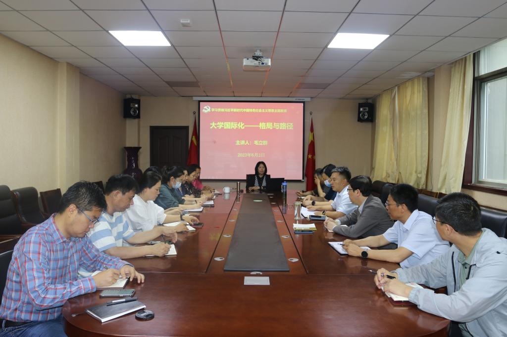 6月2日上午,院长毛立群在萝莉岛app 三楼会议室进行了题为“大学国际化——格局与路径”的主题教育专题讲座。毛立群结合萝莉岛app “双一流”建设和国际化发展实践,从学校国际化办学定位、国际化发展战略与新时期关于中外合作办学的思考等方面进行了深入讲解。她表示,萝莉岛app 要以主题教育为契机,进一步明确办学目标、抢抓政策机遇、坚持创新思维、加强内涵建设、突破办学瓶颈,不断提高萝莉岛app 办学层次,提升办学质量。