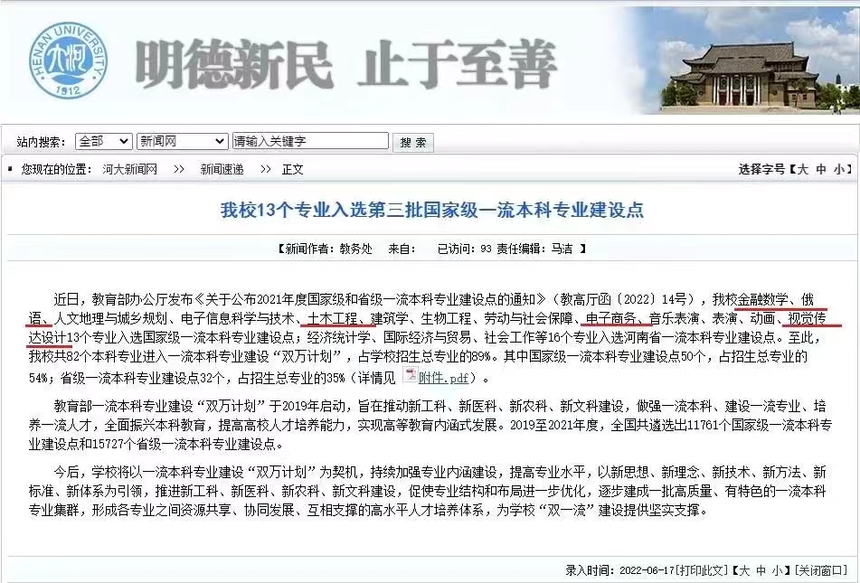 近日,教育部办公厅发布《关于公布2021年度国家级和省级一流本科专业建设点的通知》(教高厅函〔2022〕14号),我校13个专业入选国家级一流本科专业建设点,16个专业入选河南省一流本科专业建设点。