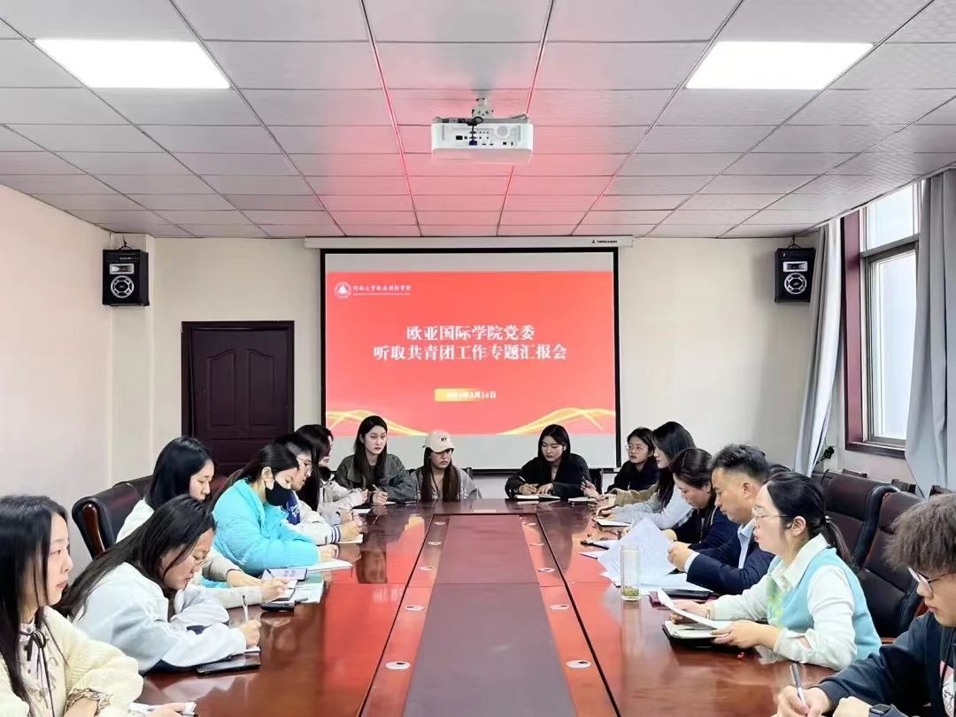 团委和学生组织要牢牢把握机遇,树立国际视野,强化服务意识、品牌意识,进一步提高站位,全面加强学习,发挥引领示范作用,团结和带领广大学子建立良好的欧亚形象,传播欧亚声音,助力学校研究型、综合性、国际化世界一流大学建设。