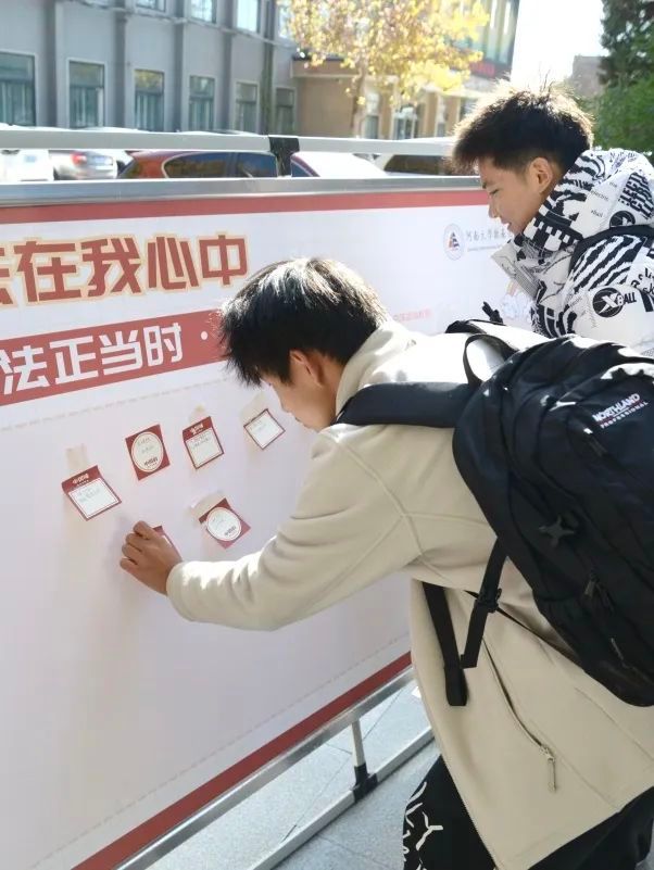此次活动还为同学们准备了精美便签,以便同学们摘抄自己感兴趣的一条宪法悬挂在相应的栏目上,并有精心准备的糖果和零食可以领取。
