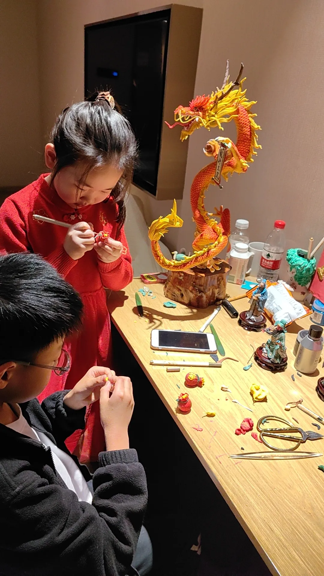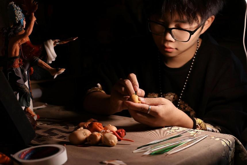 李书闯对非遗面塑等传统技艺的热爱是长在基因里的。他讲述道:“小学的时候,我每天只有一块钱的零花钱,别的小朋友都会拿去买零食买玩具,但我会攒下来,买成各色橡皮泥,搓搓捏捏,做成形态各异的小泥人。当年的创作虽然形态潦草,手法稚嫩,但也赢得了众人的好评。”