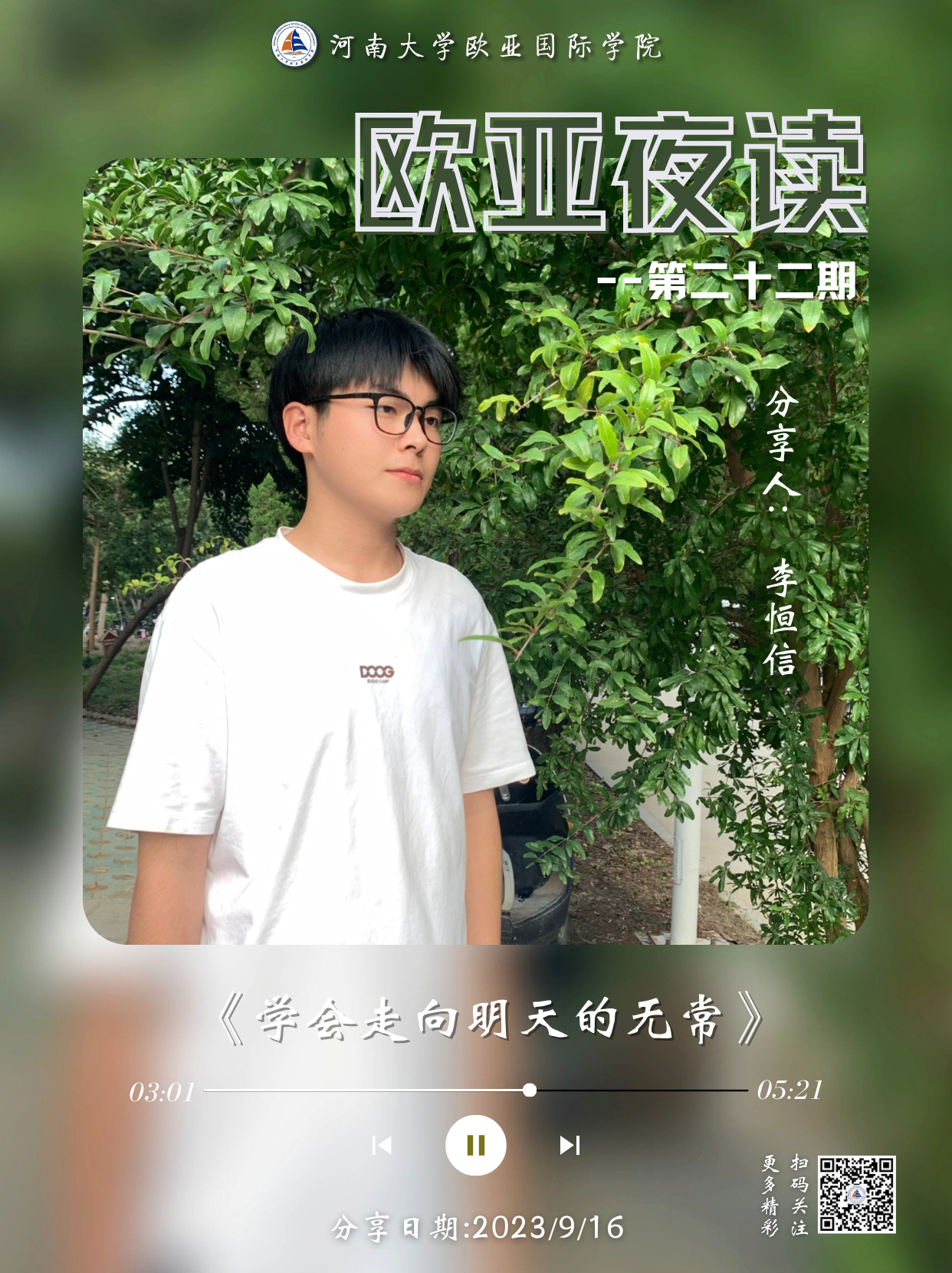没人能说的清明天的好与坏,只是希望各位,在“明天”到来之前都有接受“明天”的能力。自己的生活是自己选择的结果,接受的能力不来源于命运,而来源于自身。内心充盈者总能克服万难。