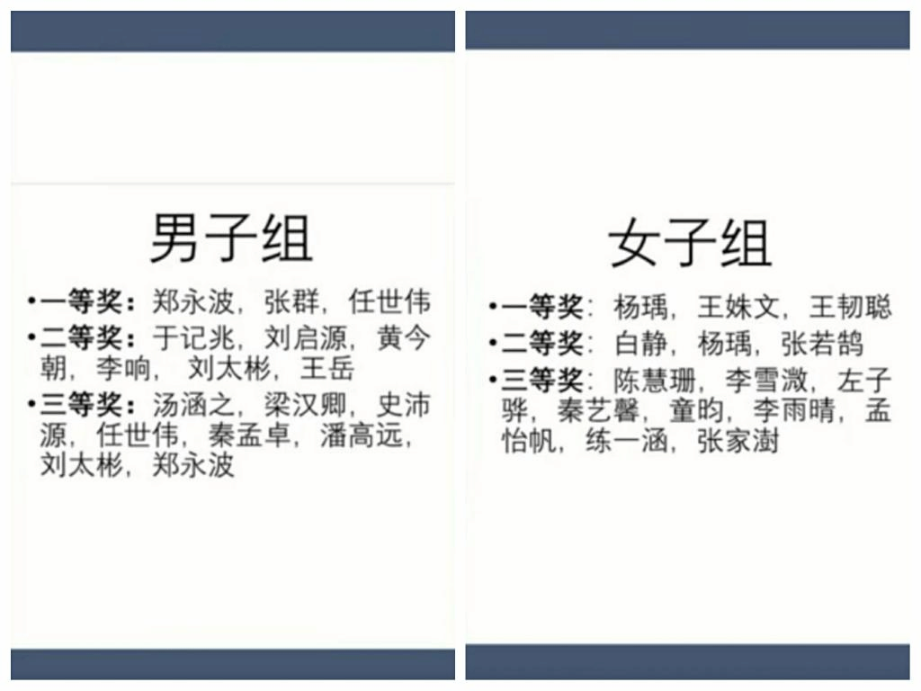 萝莉岛app在本次比赛中,以4610分的总积分获得团体总分奖第7名,获得团体总分奖。其中,18级播音与主持艺术专业的郑永波同学以总积分274分的优异成绩取得男子组开合跳第四名;18级通信工程专业的杨瑀同学以总积分271分的优异成绩取得女子组开合跳第八名;19级通信工程专业的任世伟同学以总积分273分的优异成绩取得男子组深蹲第四名;19级土木工程专业的张群同学以总积分239分的优异成绩取得男子组深蹲第十六名。当然,还有很多同学也取得了不错的成绩。本次比赛萝莉岛app学生共有6人获得一等奖,9人获得二等奖,19人获得三等奖。