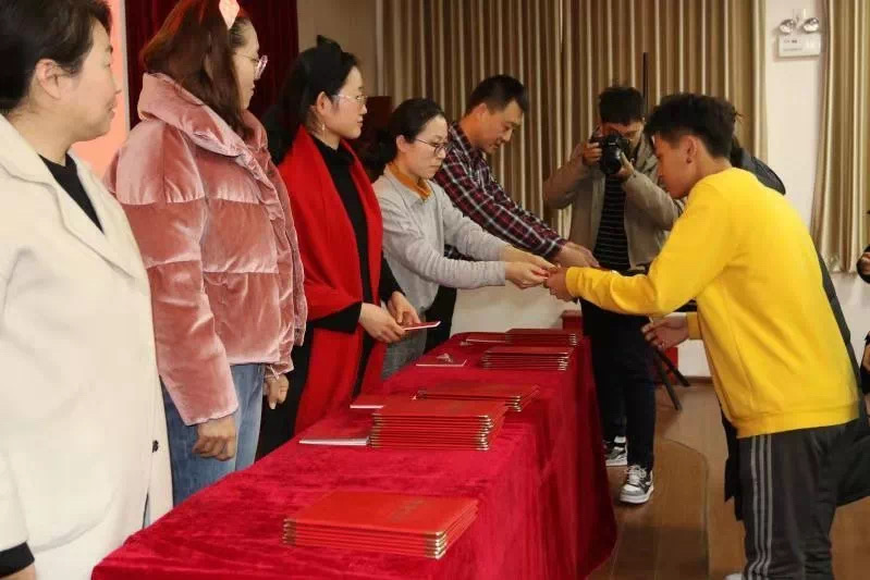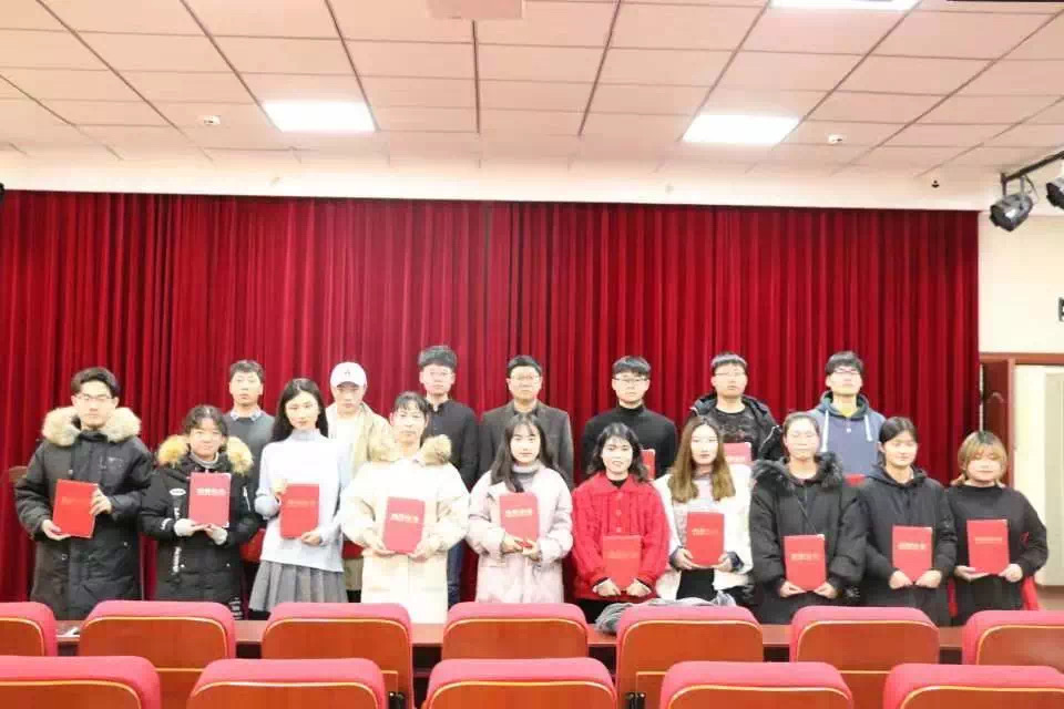 会议最后,各党支部书记上台为新党员同志发放党章并佩戴党徽。随后,萝莉岛app 党委办公室副主任宿云龙同志宣读了2019年度优秀党员名单,各党支部书记为优秀学生党员颁奖并合影留念。