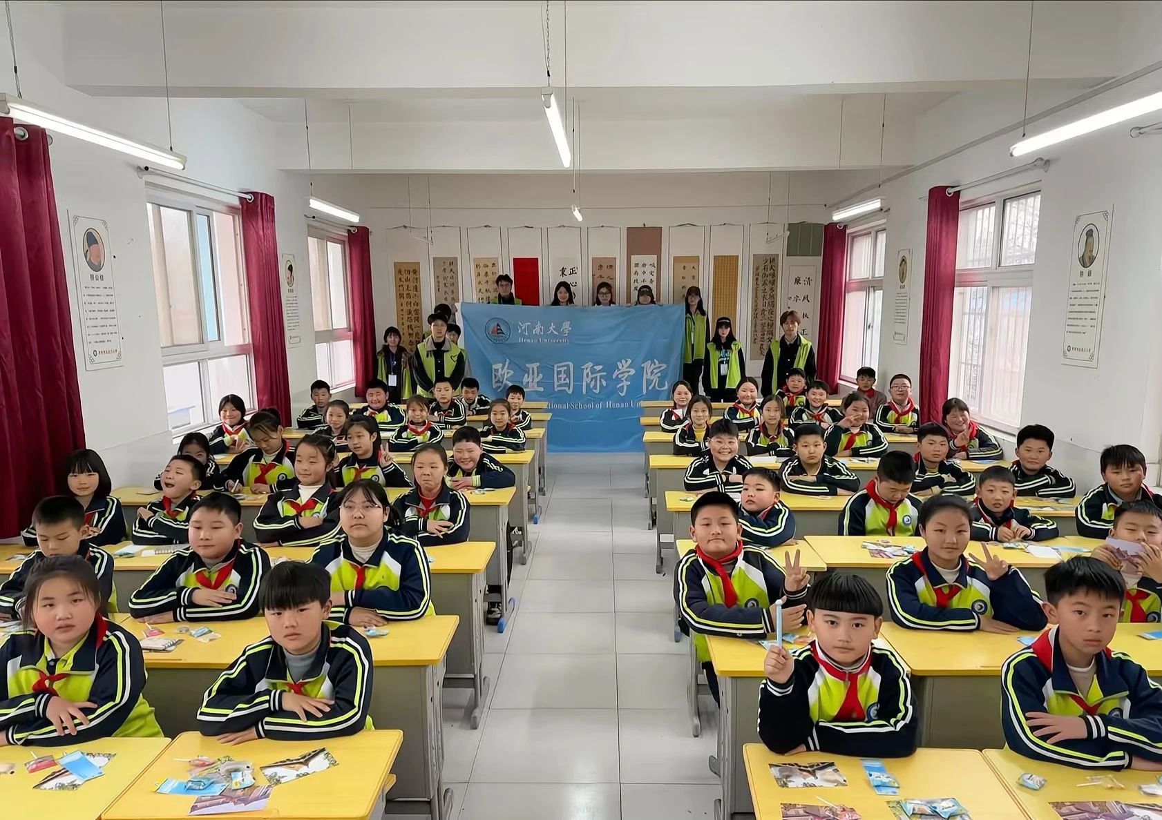 学前教育专业的志愿者们精心挑选并改编了与法律相关的绘本故事,如《不再欺负人》《小红帽的安全之旅》等,通过生动的讲述和互动,引导低年级学生理解遵守规则、保护自己的重要性。这种形式既符合儿童的认知特点,又有效传递了法治理念。