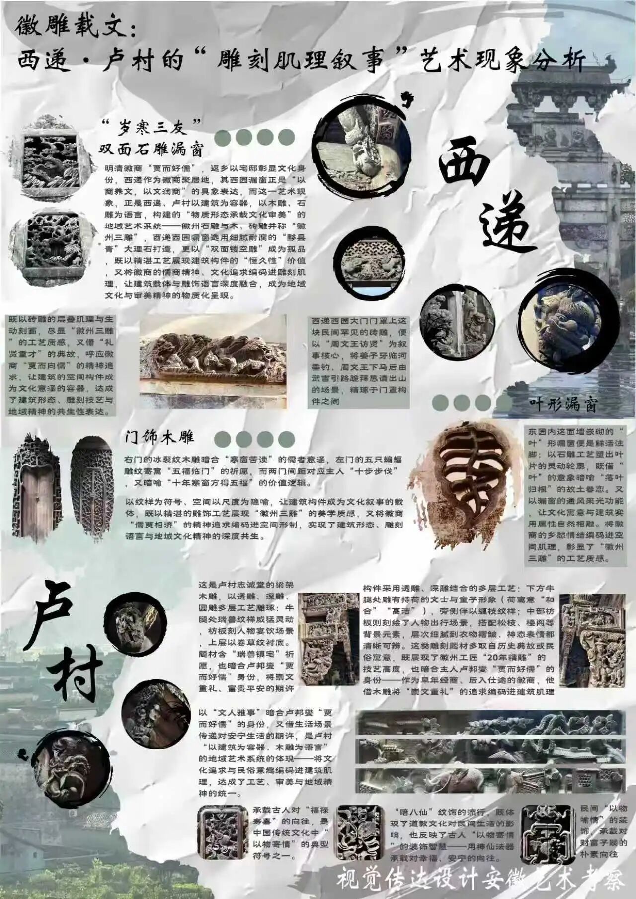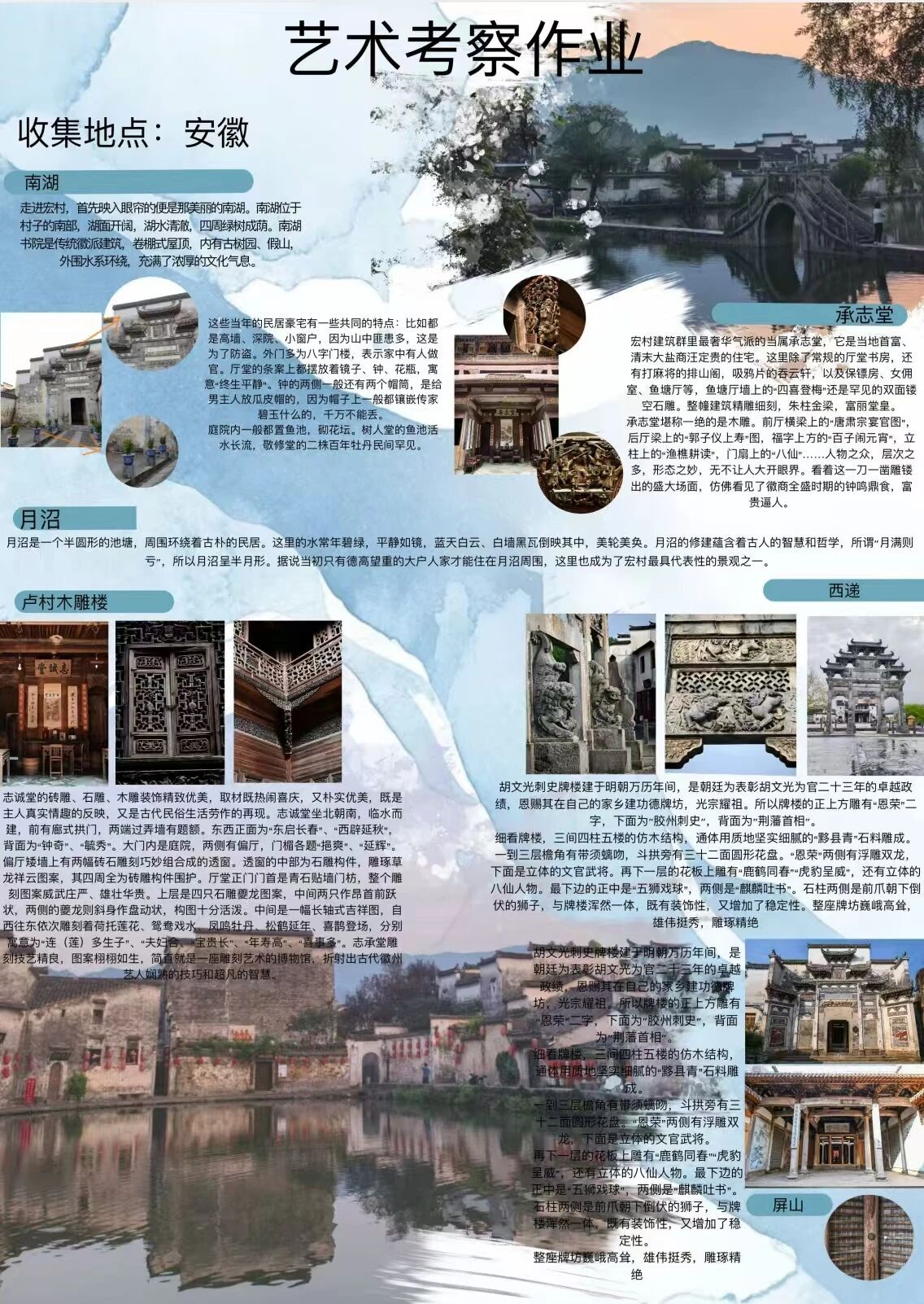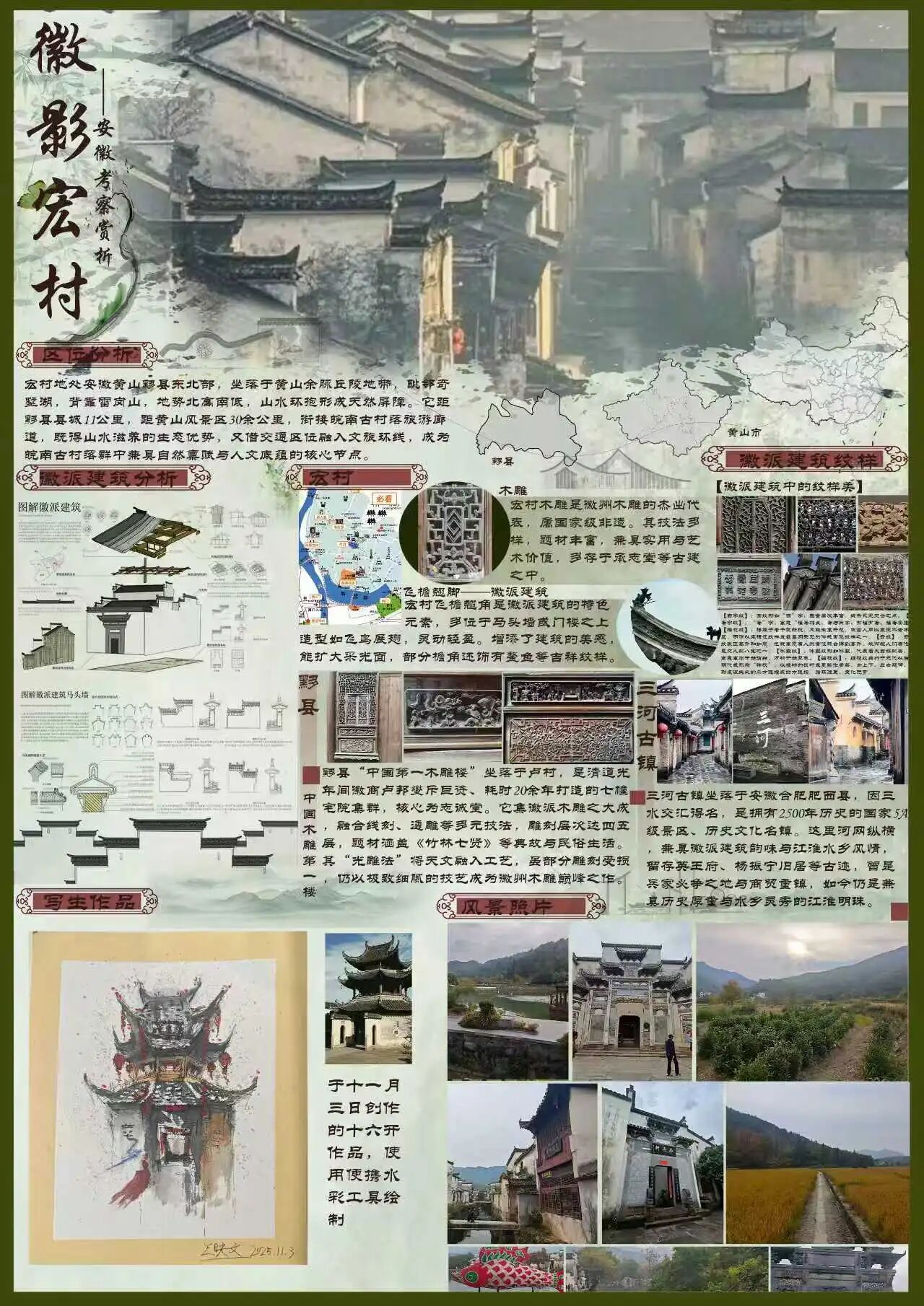 为探寻时光深处的文明印记,萝莉岛app 2024级视觉传达设计专业学生走进安徽的青山绿水与古老街巷。这是一次融合历史感知与自然体悟的行走课程,在徽州古道白墙黛瓦的村落间,同学们用专业视角重新解读这片土地,他们用画笔与镜头,记录下一个个触动心灵的瞬间。现将考察期间优秀学生作品进行展示(作品不分先后,因客观条件限制,未能将所有作品进行展出)。